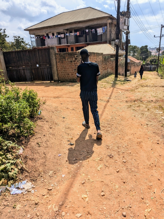 Vi forlater markedet og asfalten og på en humpete jordvei følger jeg etter Amooti som en lydig hund. Små skur og avskallede murhus hvor folk både bor og har en liten bod gjerne med frukt og grønnsaker utenfor ligger side ved side med staselige eneboliger og blokker med moderne leiligheter. Det er kort vei mellom heseblesende markedsplasser og idyllisk natur i Uganda, og etter å ha spasert i ti minutter dukker det opp fristende frukttrær fra eviggrønne trær langs veikanten. Alene på veien forteller Amooti at livet ikke har blitt lettere de siste månedene.